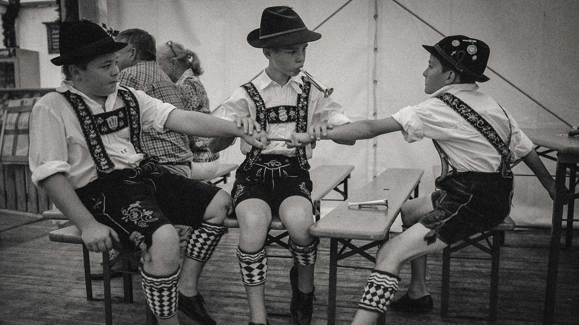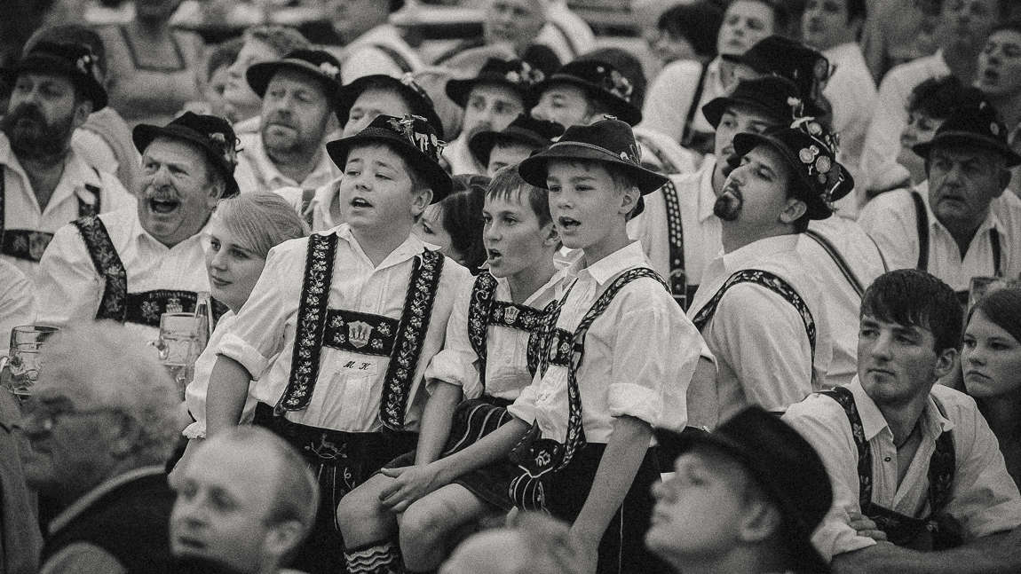 Warm ist es im Festzelt am Wittelsbacherpark. Der Geruch von Leberkas und Brathendl liegt in der Luft, dazu Tabak, Bier und Blasmusik. Langsam füllt sich der Raum unter dem großen weißen Zeltdach. Menschen in Tracht nehmen an Biertischen unter Kunsttannen-Girlanden Platz. Wohin ich auch schaue: Dirndl, Lederhosen, Wadlwärmer, Trachtenschmuck. Fesche Madln und gestandene Mannsbilder, davon viele mit Bart, Bauch und Bizeps.