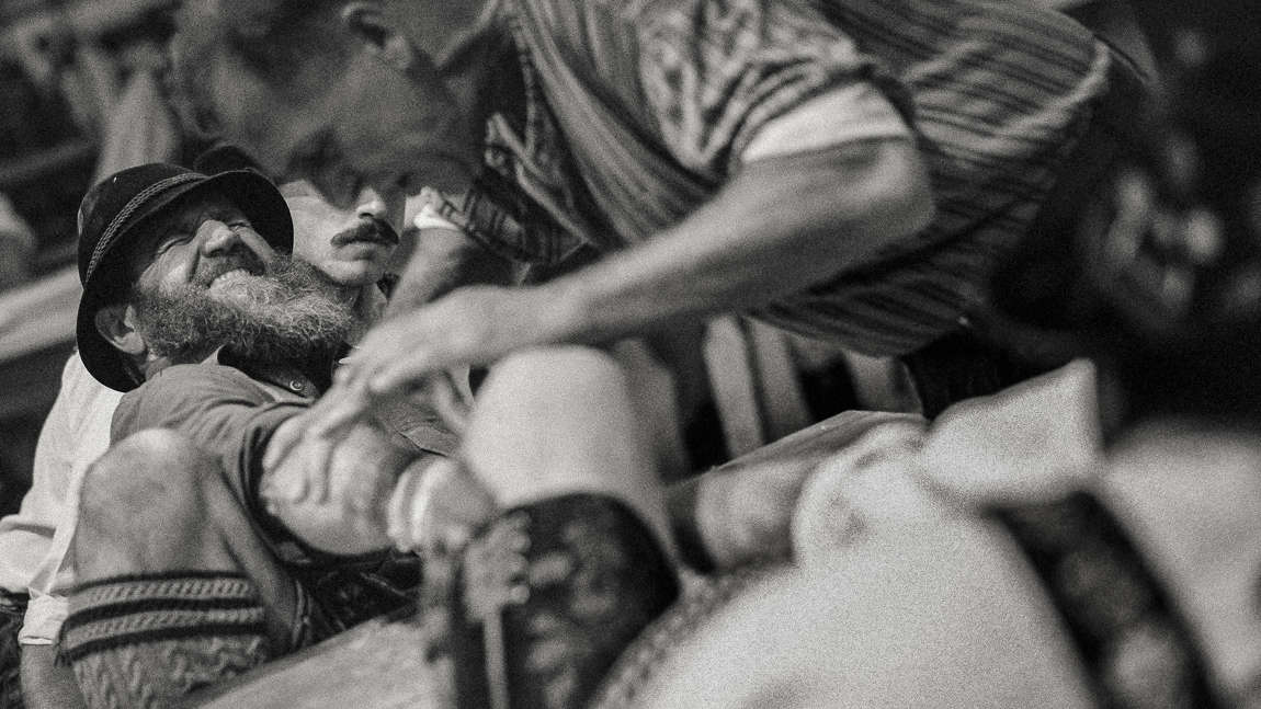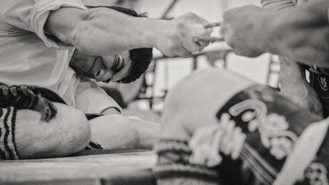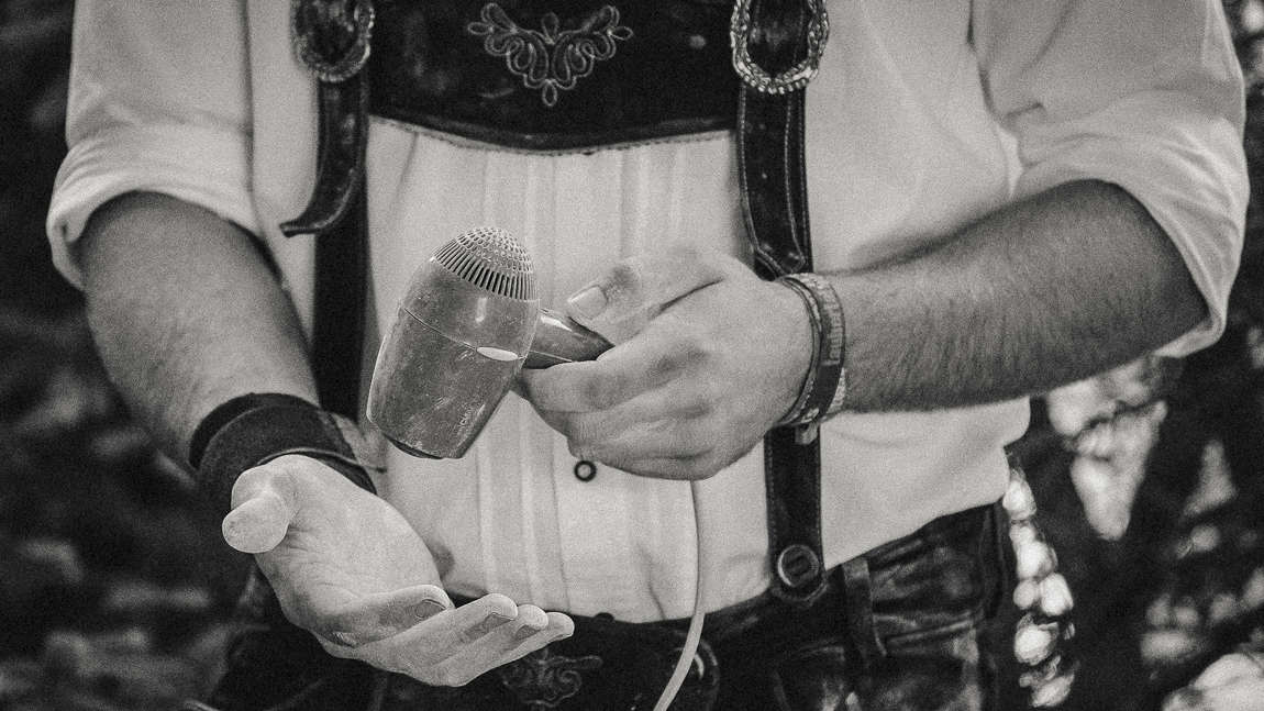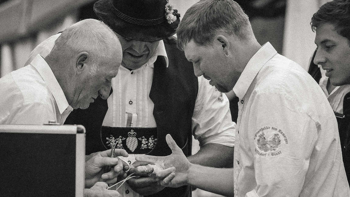 Als ich die Teilnehmer bei ihren Vorbereitungen beobachte, wird mir klar: Das hier ist ernst, keine Touristengaudi und kein Kirmesboxen. Hier geht es wirklich um Tradition, Männlichkeit, und um Sieg oder Niederlage. Hinter der Bühne: Tracht und Tunnelblick, überall konzentrierte Gesichter. Finger werden geknetet und aufgewärmt, gepulvert und geföhnt. Für Bier und Brathendl ist jetzt noch keine Zeit, erst wird gekämpft.
