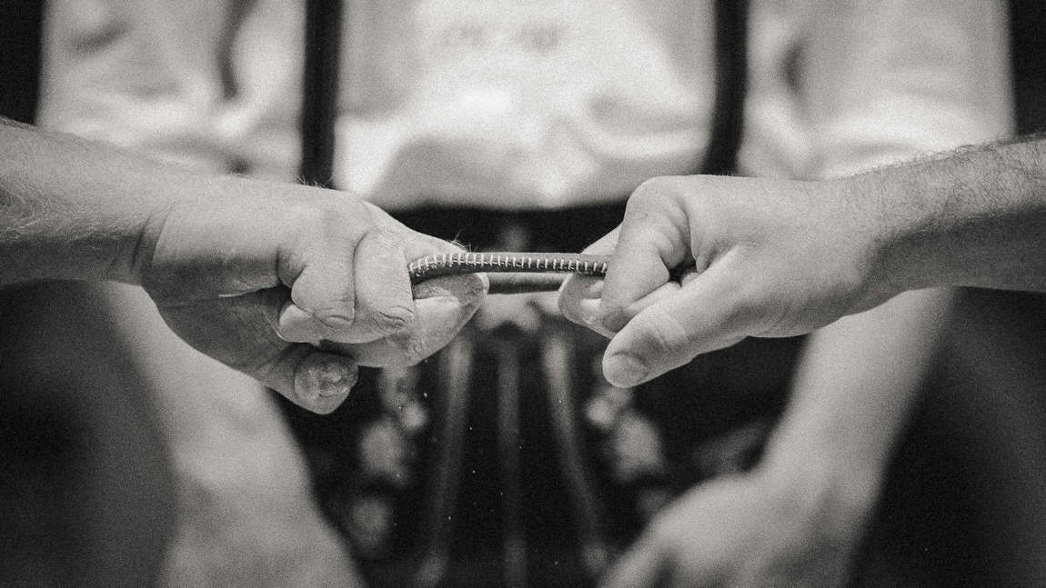 Die Bühne ist bereitet, die Spiele können beginnen. An einem Sonntagvormittag im August beginnt in Garmisch-Partenkirchen ein Kraftwettkampf, der bayrischer nicht sein könnte. Fingerhakeln. An einem festgeschraubten Tisch sitzen sich die zwei „Hakler“, etwa gleich schwere Kontrahenten, auf Hockern gegenüber und versuchen sich gegenseitig hinüber zu ziehen. Dazu stecken sie ihre austrainierten und mit Magnesiapulver bestäubten Mittelfinger durch einen Lederring von etwa zehn Zentimetern Durchmesser.
