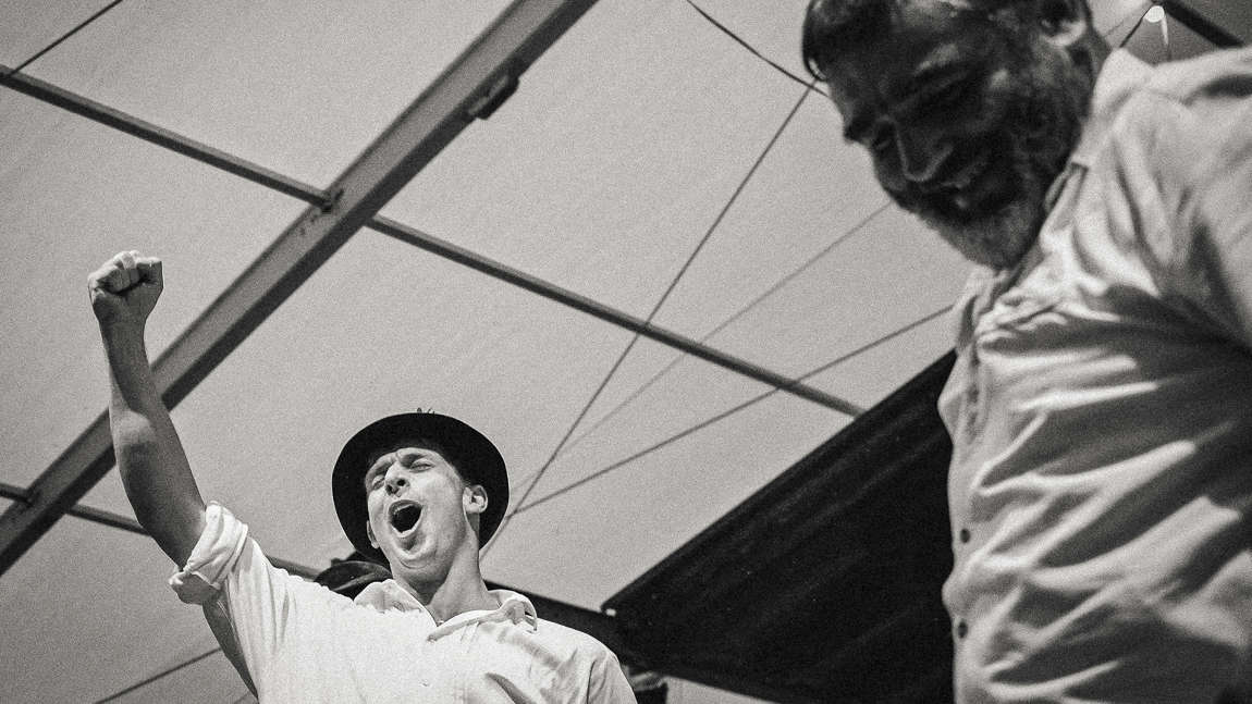 „Brüllend und mit gestreckten Fäusten liegt er in den Armen seines Auffängers.“