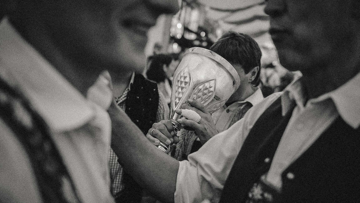 Der Nachmittag neigt sich. Ein Sommergewitter ist prasselnd und donnernd über dem Festzelt niedergegangen. Es ist kühler geworden, Zeit für das Finale in der Königsklasse. Josef Utzschneider und Michael Kölb nehmen ihre Plätze ein, greifen durch den Ring und stemmen die Schienbeine vor die Tischkanten. Ich entscheide mich zunächst für ein Bild von den anfeuernden Zuschauern. Ehe ich das im Kasten habe, steht der Sieger jubelnd hinter mir – Usain Bolt hat wieder zugeschlagen.