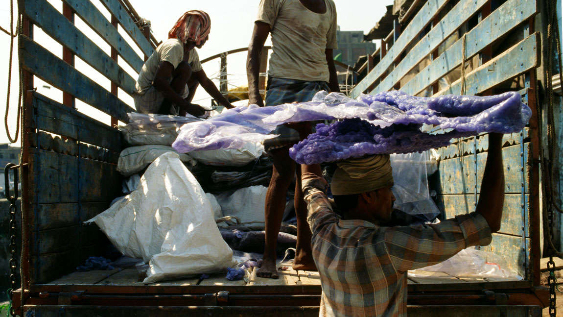 Unzählige kleine Ein-Zimmer-Werkstätten dominieren diesen Teil der Stadt. Hier werden die Plastikabfälle sortiert, unter lautem Maschinenlärm geschrotet und anschließend unter stinkendem Rauch, der in Augen und Mund brennt wieder zu handlichen Formen verschmolzen.