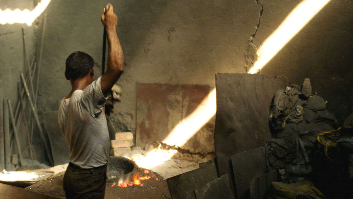 Aber schnell verlieren sie wieder das Interesse an mir und wenden sich ab. Die leuchtende Suppe in ihrem Schmelztiegel scheint fertig zu sein. Vorsichtig ziehen sie den Behälter mit langen Stangen aus der Glut und gießen den Inhalt in bereitstehende Brikettformen. Die Hitze wird unerträglich, die Dämpfe benebeln meine Sinne und mir wird schwindlig. Angeschlagen trete ich den Rückzug an und rette mich nach draußen in die Mittagshitze. Sie ist erfrischend.