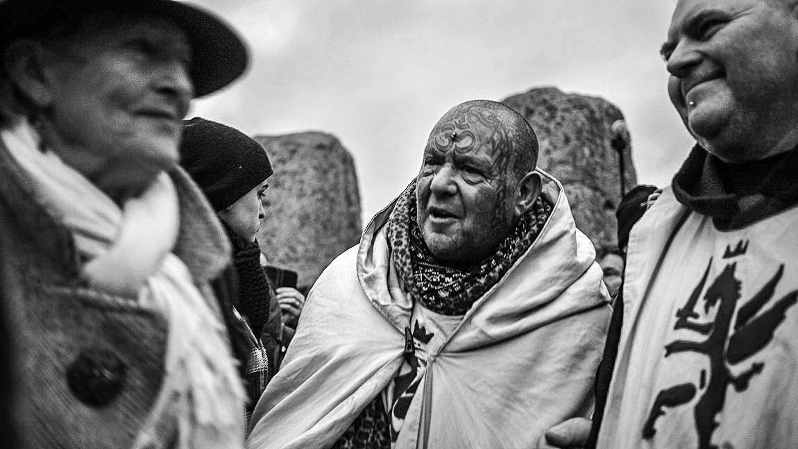 Zwischen den fünf Meter hohen, grob geschlagenen Steinkolossen drängen sich Familien mit kleinen Kindern, junge Hipster, asiatische Touristen, ein Dutzend weiterer, in bunte Gewänder gehüllte Druiden – rund 6.400 Menschen sind in der frostigen Graslandschaft Wiltshires zusammengekommen, um gemeinsam die Wintersonnenwende zu feiern.