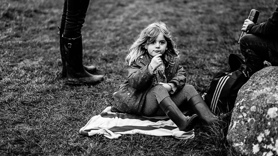 Ein Mädchen sitzt zwischen den Steinen und wundert sich, was die Erwachsenen für einen Bohei machen.