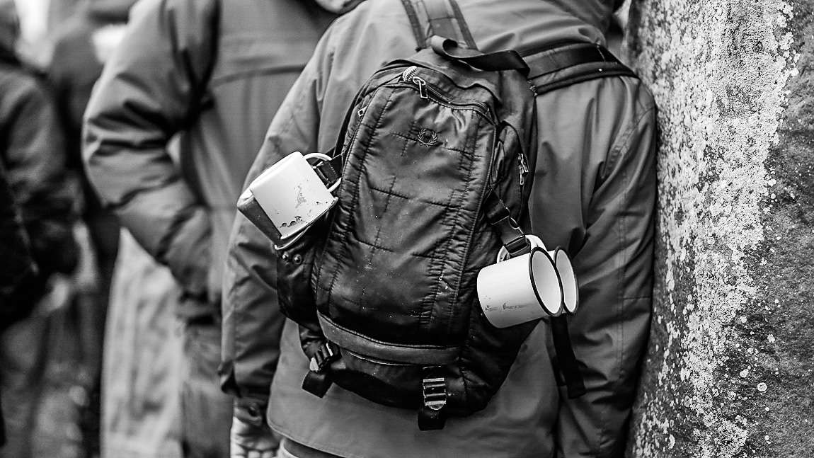 Gut gewappnet: Einige Besucher des Events haben sich für den kalten Morgen vorsorglich mit warmem Tee und Tassen ausgestattet.