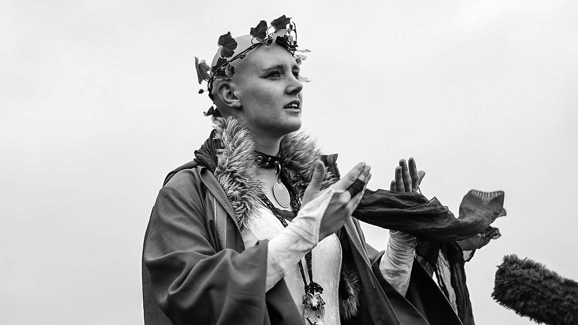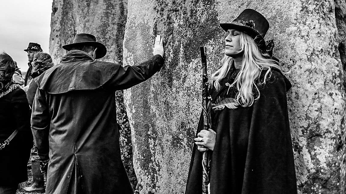 "Die Steine haben mich gerufen", erklärt eine junge Druidin in die Kamera eines TV-Teams.