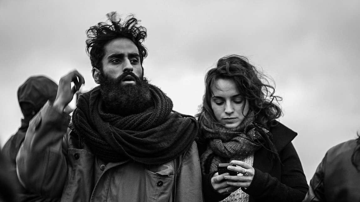 Trotz des Bartes kein Druide: Zwei hippe Engländer schießen Schnappschüsse vom Wintersonnenwende-Event.