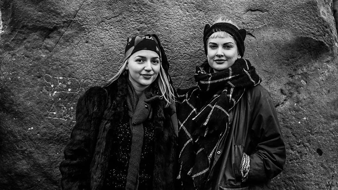 Zwei junge Britinnen haben sich für ihren Ausflug nach Stonehenge als Druidinnen verkleidet.