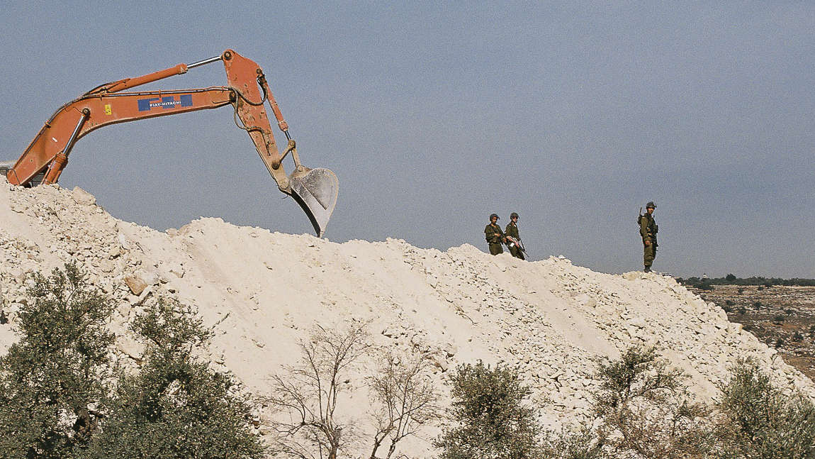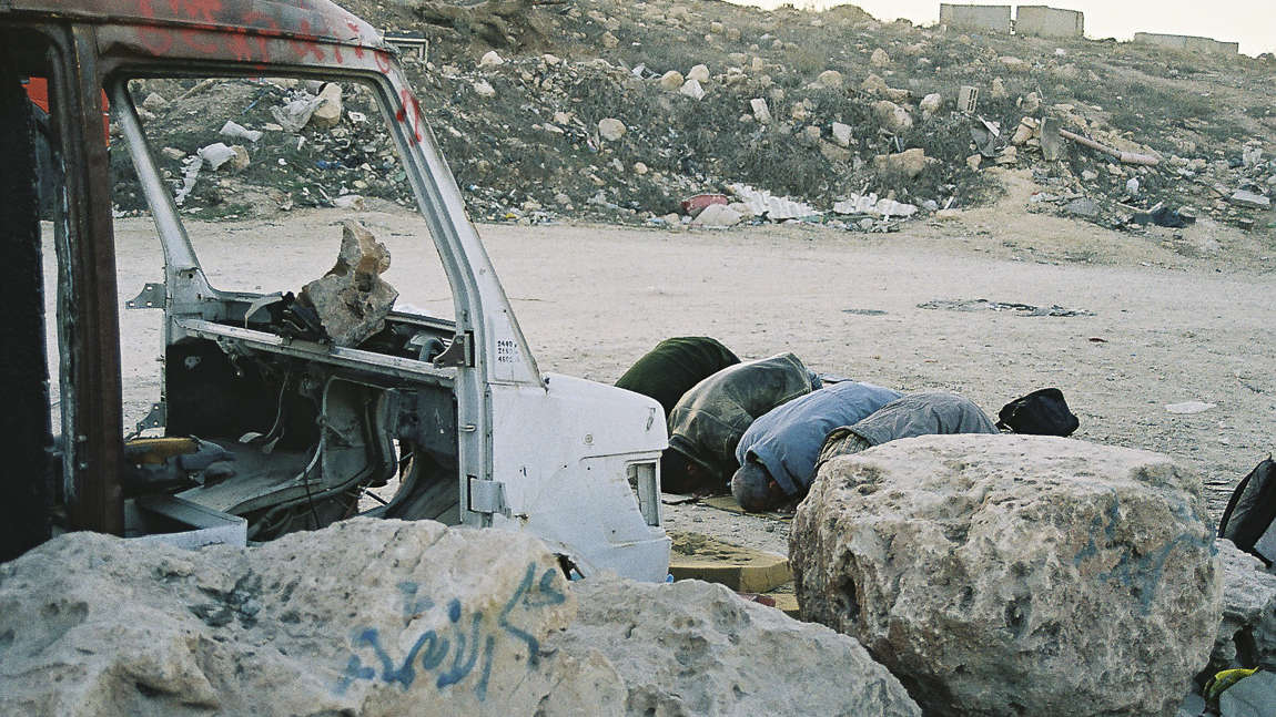 Die Soldaten möchten jetzt auch gerne langsam abrücken und machen dies durch immer härteres Durchgreifen deutlich. Wer nicht schnell genug ist, wird verhaftet. Die Gummigeschosse treffen die Jugendlichen nun nicht mehr nur an den Beinen. Ein Dutzend Jugendlicher hat sich hinter einer alten Mauer versteckt. Aus ihren Schleudern zischen die Steine in Richtung zweier Militärtrucks unweit der Baustelle. Immer wieder ertönt metallenes Scheppern, wenn eines der Ziele getroffen wird, gefolgt von „Allahu Akbar“-Rufen.