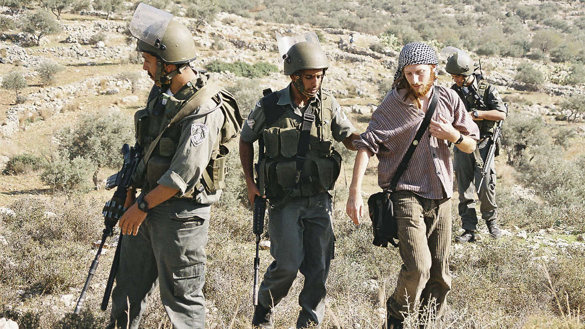 Ab und zu rennt eine Gruppe Demonstranten los und probiert erfolglos, die Linie der Soldaten zu durchbrechen. Immer mal wieder ertönen Warnungen aus den Lautsprecherwagen der Armee. Ein israelischer Aktivist stellt nun seine vier Söhne direkt vor den Soldaten auf, erklärt ihnen etwas und fängt dann an, energisch auf die Soldaten einzureden. Diese versuchen ihn zu ignorieren, kauen gelangweilt Kaugummi oder spielen auf ihren Handys. Nur Hin und Wieder können sie sich ein Schmunzeln nicht verkneifen, so als hätte der Aktivist gerade einen guten Witz erzählt. Das macht ihn rasend.