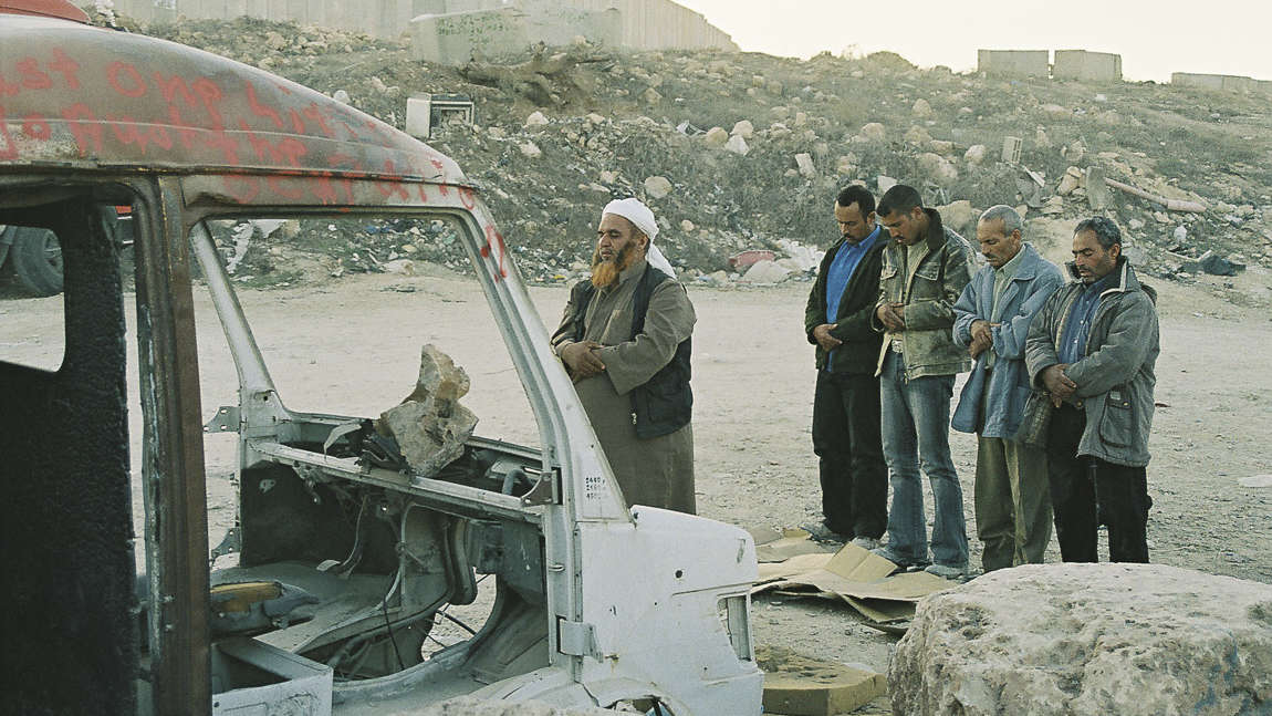 Wie fast jeden Freitag fahre ich auch heute wieder mit einem Sammeltaxi zum Ort des Geschehens. Mit einem Kollegen arbeite ich an einem Fotoband über den Grenzkonflikt. Doch inzwischen ist es eher die Routine als die Hoffnung auf ein gutes Bild, die mich auch an diesem Morgen in das Taxi steigen lässt. Und wie schon so oft nach dem Freitagsgebet rollt auch heute der bunt geschmückte Lautsprecherwagen durch die leer gefegten Straßen von Bil´in und fordert die Bewohner auf, sich der Demonstration gegen den Bau der israelischen Grenzanlage anzuschließen. Nur Wenige folgen ihm. Es sind vor allem Kinder und ein oder zwei Dutzend ausländische Demonstranten – aus Israel, Kanada, Frankreich und den USA.