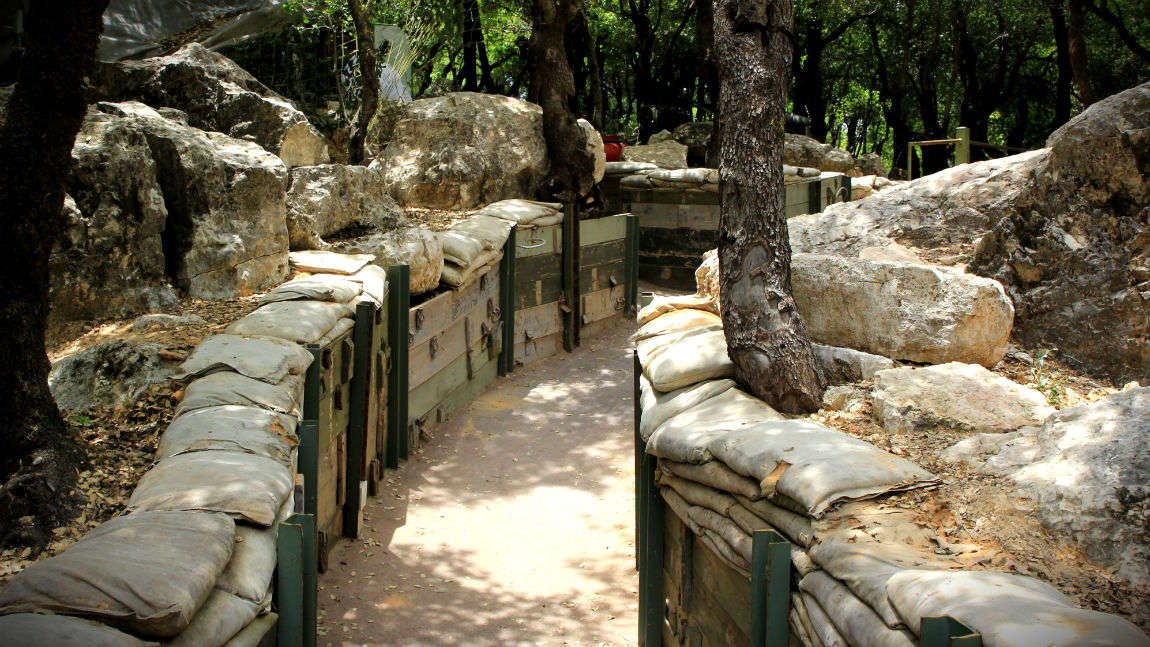 Trotzdem führt mich Ibrahim stolz in die Open-Air-Ausstellung „Wahrzeichen des Widerstands“. Wie Gartenzwerge in einem deutschen Vorgarten stehen dort Maschinengewehre zwischen Blumen, sind Granatwerfer unter lichten Bäumen drapiert. Hinter Büschen lugen menschengroße Puppen in Kampfanzügen hervor. Die Wege sind mit opulenten Nato-Draht-Rollen ausstaffiert, die sich über Grün, Felsen und das Unterholz wälzen. Besucher sollen auf den mehreren hundert Meter langen, fachmännisch angelegten Wegen wohl einen Eindruck von der Front bekommen.